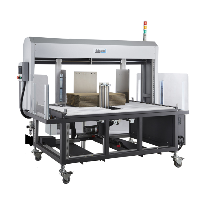 Automatic 4 sides squaring machine ideal for squaring the stack of corrugated cardboard before strapping. Bilateral paddles with front bundle stop and rear pusher, CS4 ensures the bundle be completely ordered before strapping Ideal to integrate with Joinpack A-8 or A-9 series strapping machine or existing conveyor and strapping machine.
